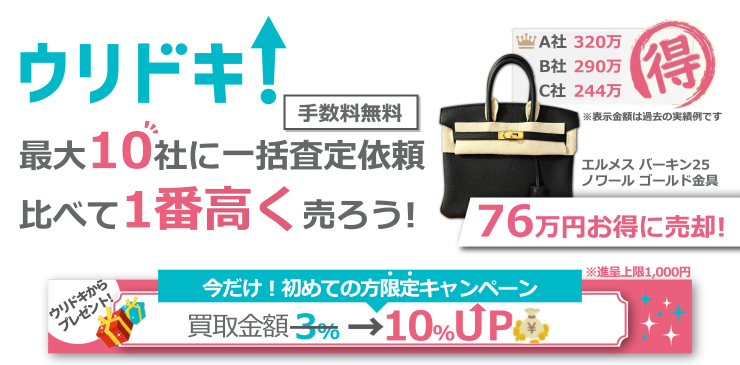 複数のプロに査定してもらえる買取比較サービス【ウリドキ】です。 時計・ブランド品・お酒などの高級品をはじめとしてさまざまな商品...